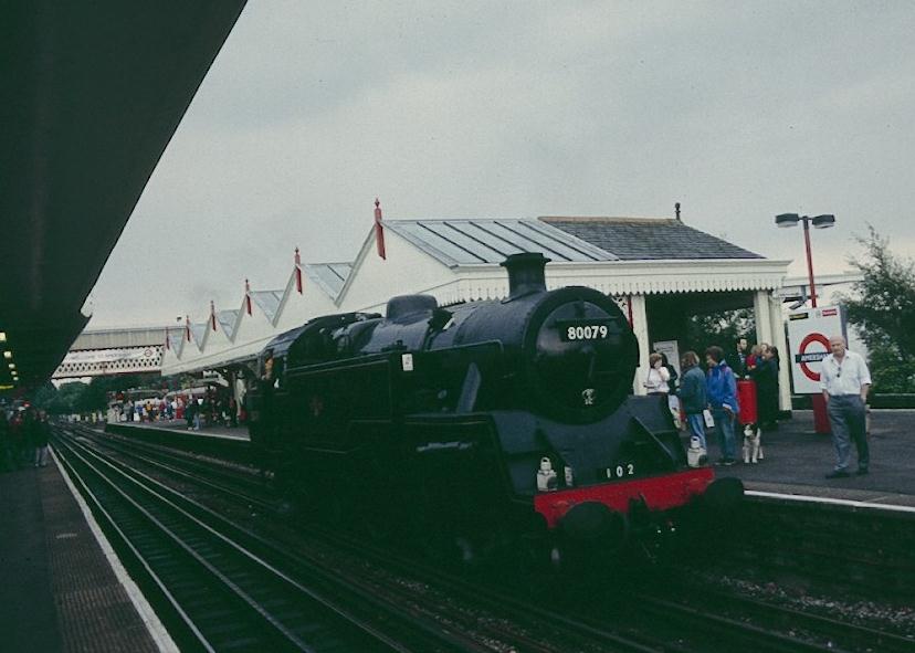 I bought a return ticket to Amersham and headed down to the platform. An old bum with a Zimmer frame was making his way down the stairs slowly and I carried his frame for him. A couple with backpacks got on the first eastbound train with me, but we all had to switch to a second train when ours stopped at Edgware Road. Just a short passage separated the Circle Line platform from that of the Amersham train at Baker Street; I was there just in time to see the 10:06 depart, though the Lees had not yet arrived (we had specified 10:20) and I had now a considerable wait. A rugby final was taking place in Wembley that afternoon and the St. Helens supporters were good naturedly singing their songs at rivals across the tracks. I consumed a Twix. It was fun to watch the massing of the crowds as the trains pulled in and out, a West Indian voice advising everyone which trains did and which did not go to Wembley Park. The Lees arrived exactly ten minutes before our 10:36 departure, but Harold used most of this time to buy a ticket upstairs.