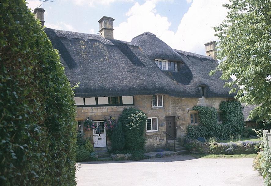 After a while, in more parklike surroundings, we crossed a few stiles and joined a road into the village of Stanway. A cricket pavilion, donated to the village by J.M. Barrie, was over on our right and the substantial Stanway House on our left. Several walkers were emerging from the path that took us through fields to the highway, where at 2:15 (thanks to Mark Richards’ map) I knew there to be a teahouse, the Old Bakehouse, which also served as a b&b and the local post office. This was soon located and after we had hunted up the proprietress we sat inside for cool drinks and baked goods – I had a piece of walnut and coffee cake. Then we all used the loo out back and hunted up the proprietress a second time, so we could pay.