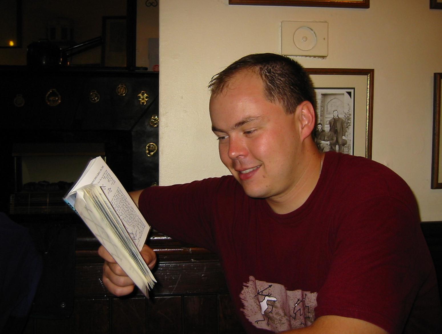 Gavan studies Hannon’s guidebook at the Wasdale Head Inn. I used a version of this photo in A Walker’s Alphabet.