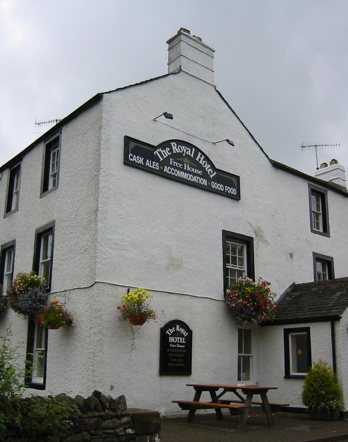 Near the forests things began to level off a bit and the rain also came to an end, though things were still rather misty. At High Row we reached a road junction, continuing steeply downhill for the last mile into Dockray. Near the village we could see a farmer on a dune buggy, his dog riding shotgun and these two soon had a flock of sheep moving toward the Ullswater Road – where we found our refuge for the night, The Royal Hotel, on our left. We had walked 13 miles and it was 5:00.