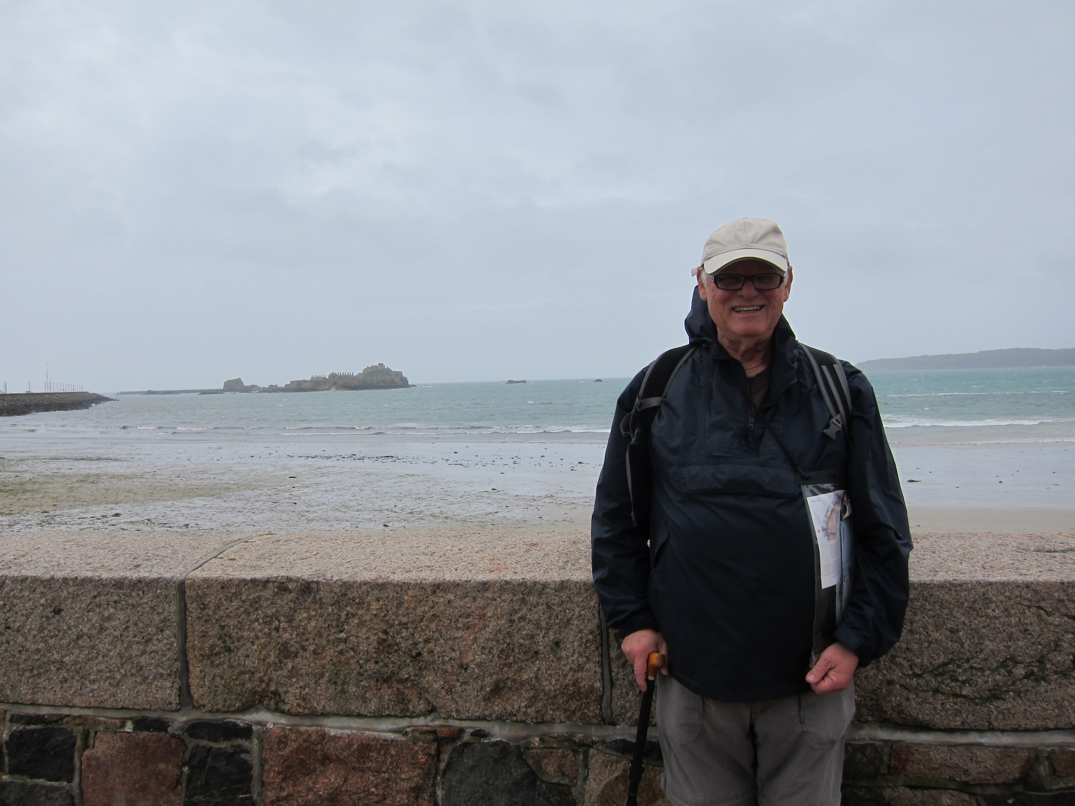 As on Guernsey Adrian soon found a number of ways of indulging his interest in military history and as we neared St. Aubin itself he declared a desire to visit its fort, connected to the mainland by a causeway. While he did so Naomi and I agreed to have a coffee at one of the many seaside cafés hereabouts and this turned out to be a leisurely enterprise since Adrian was gone a long time. (He hadn’t calculated on wading across the harbor outlet before reaching the causeway.) I was not too bothered by such delays on this trip since our instructions were to call for a taxi ride home only when we had reached the end of the day, no one was waiting for us to return for a meal, and we had the maximum amount of daylight available for late walking. I used the opportunity of this pause to take off my rain jacket – I never wore it again on this trip – but Naomi and Adrian, far more sensitive to chill than I was, usually wore their raingear in all weathers.