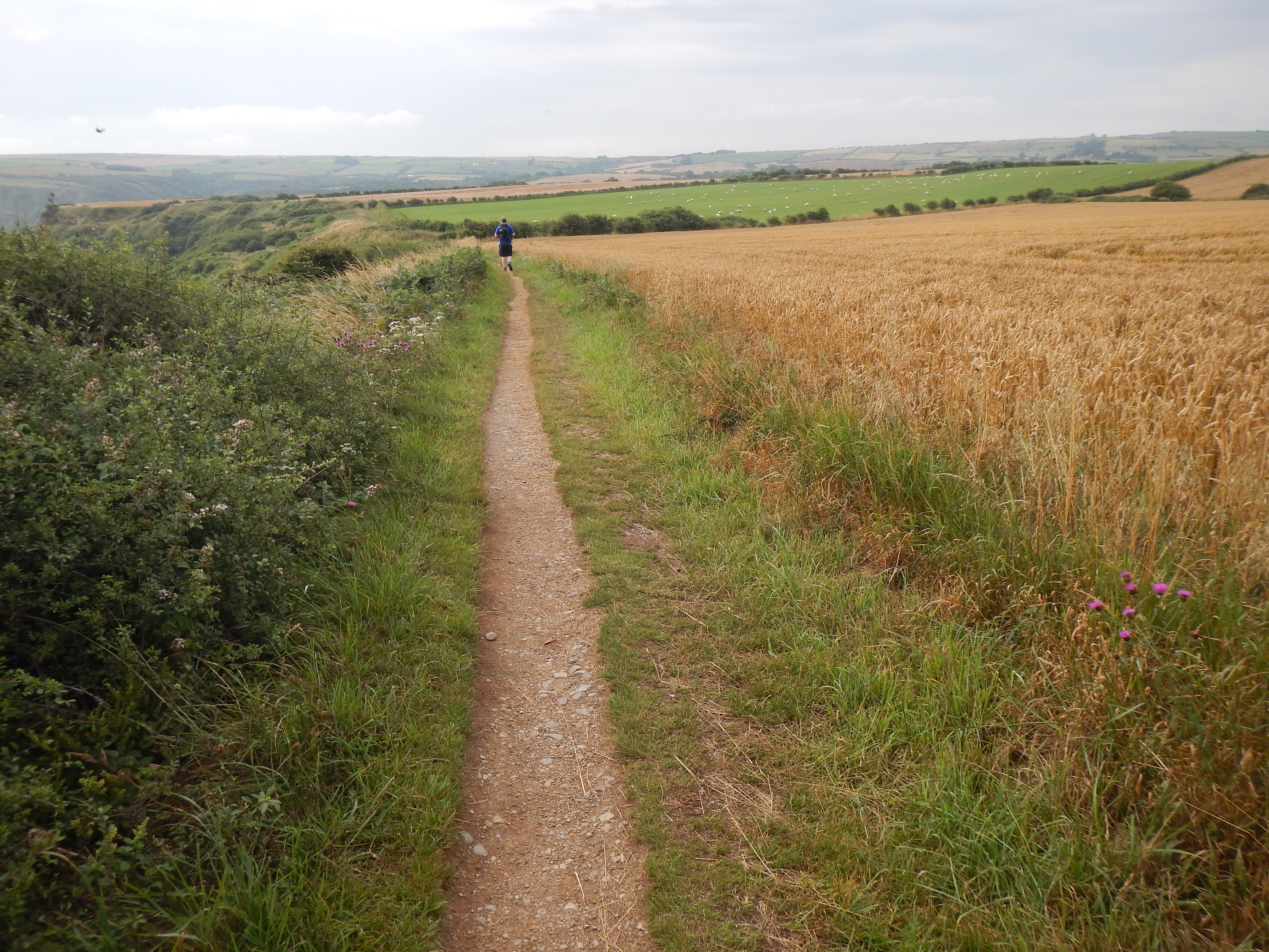 It was far brighter today and quite pleasant as we left our b&b and turned left at the next street corner, passing through suburbia and onto a farm track. Gavan was soon well ahead of me but I was surprised to see him returning in my direction. He said that some of the route proposed by Jane was overgrown but I had a solution. We had reached Cliff Farm and there was a track heading back to the coastline here – all we had to do was use it and we had soon reconnected with the Cleveland Way.