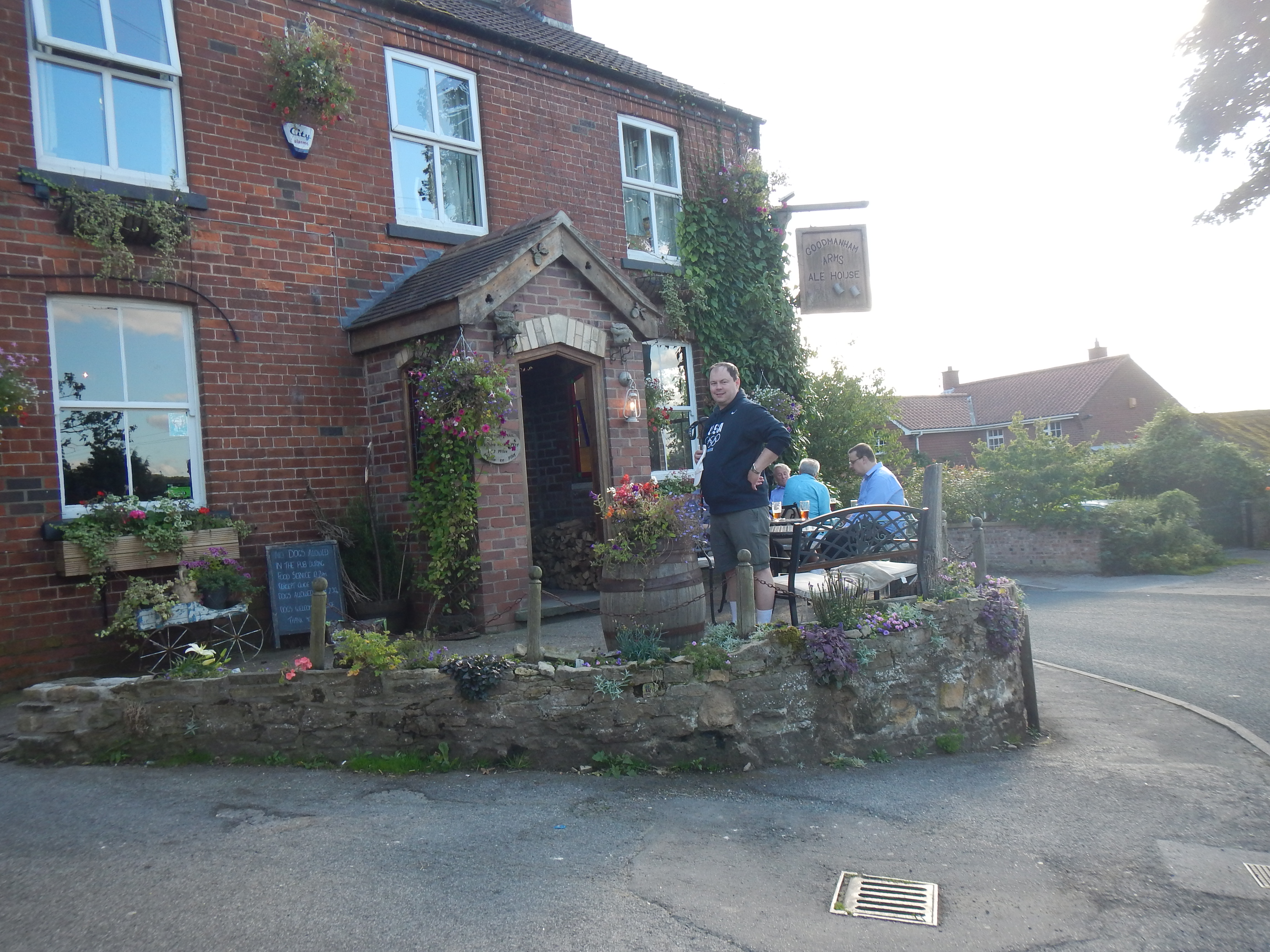 After lunch we wandered through the rest of the farm and began a descent amid large fields, eventually reaching a road crossing where all Yorkshire Wolds Way walkers have to make a decision. There are, in fact, two endings to today’s stage. If you head west and south you come to the village of Market Weighton. If you head west and north you come, even more quickly, to the somewhat smaller village of Goodmanham. In our case the choice had been made for us in the assignment of our accommodation provider, whose Shiptonthorpe establishment, Robeanne House, was closer to Goodmanham. So we continued in this direction, soon reaching the main street and heading for our rendezvous point, the Goodmanham Arms. It was 5:15 and we had walked twelve miles.
